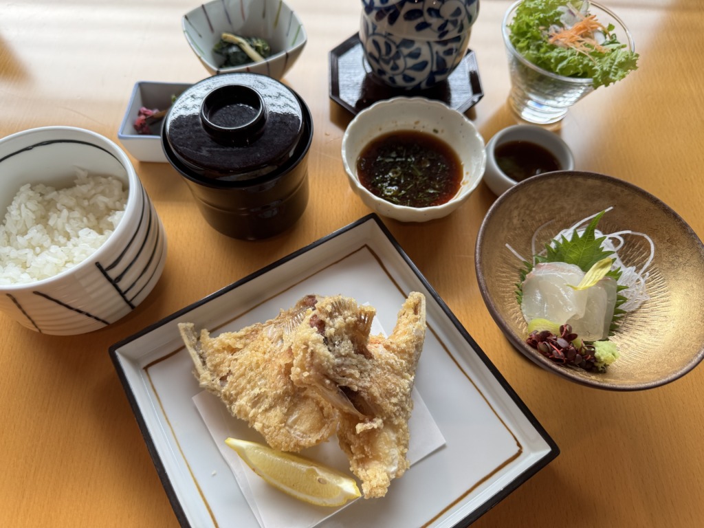 小鉢/造里/鯛カマの唐揚げ/茶碗蒸し/御飯/味噌汁/香の物