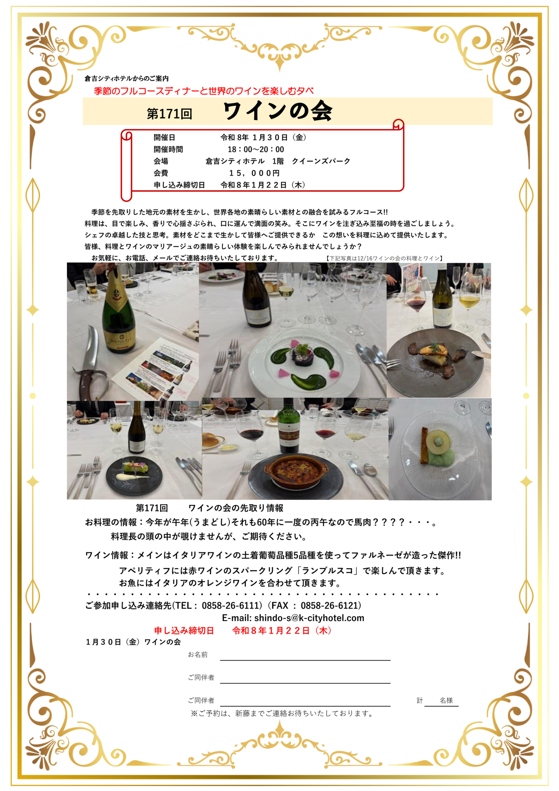 倉吉シティホテルではワインの会を楽しむ会を開催いたします。