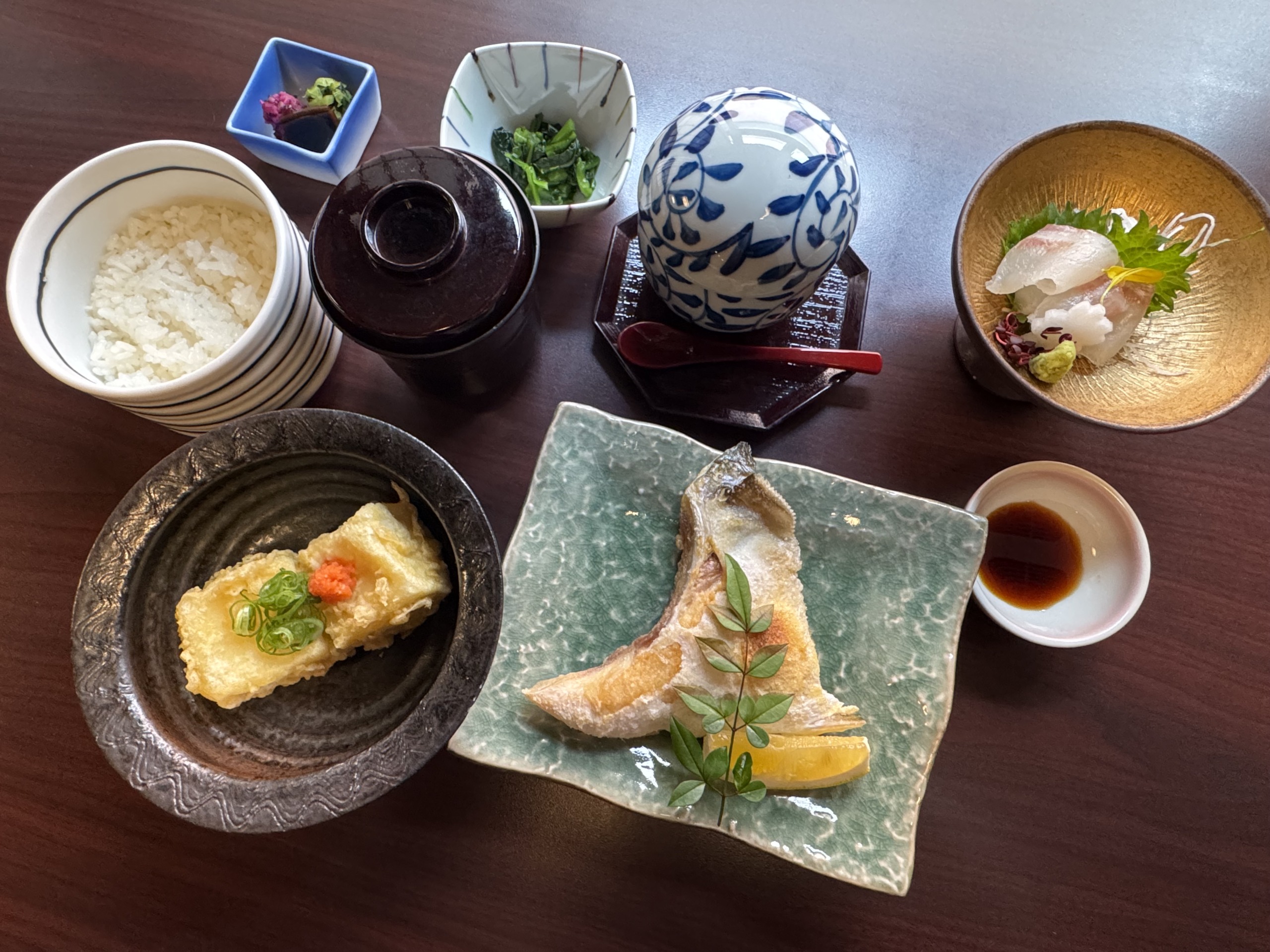 小鉢/造里/はまちカマ塩焼き/揚げ出し豆腐/茶碗蒸し/御飯/香の物/味噌汁