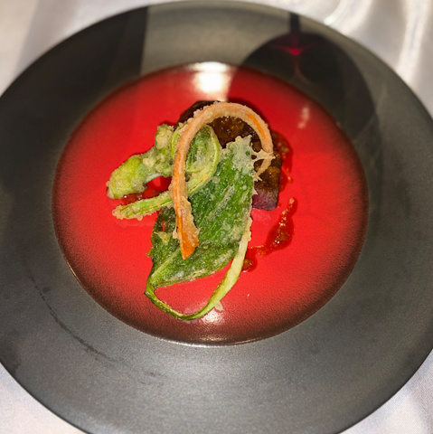 肉料理 牛ヒレ肉のグリエ 春野菜のフリットあけからしのソース