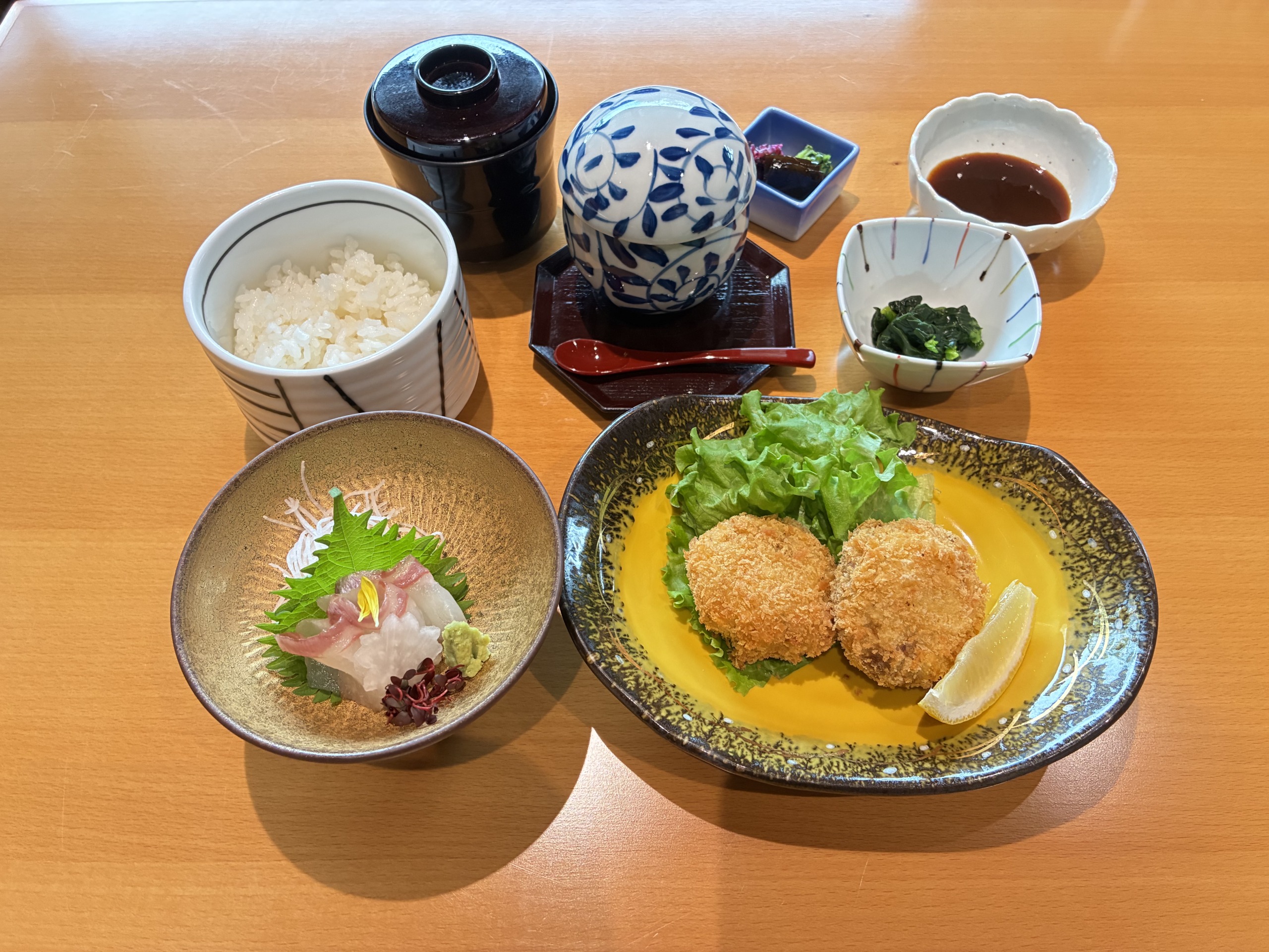 小鉢/造里/和牛コロッケ/茶碗蒸し/御飯/香の物